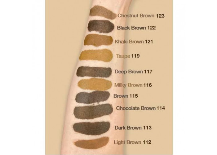eyeliner, dudaklar, kamuflaj, saç simülasyonu için geniş bir renk yelpazesinde sunulmaktadır. Kalıcı makyaj için pigmentlerin güvenliği esas alınmıştır. Resimdeki renkler kaş renkleridir.